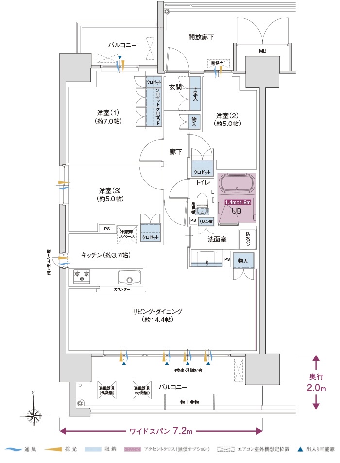 3面採光 ロードヒーティング 角部屋 24時間換気システム 天井高2.5m以上 隣接建物距離2m以上 前面棟無